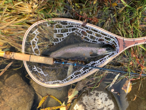最後の一振りと思ってフライを付け替えて、重めのフライでリトリーブをしたらまた来ました。